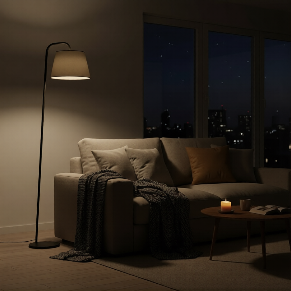 Gunakan Layering: Jangan cuma satu lampu di plafon. Tambahkan lampu meja atau standing lamp di sudut ruangan.